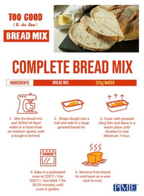 If you want to enjoy a freshly baked loaf of white bread without the hassle – or a cupboard full of ingredients – PME’s Too Good (To Be True) Bread Mix will allow you to bake a delicious loaf of white bread with minimal effort. Whether you make it by hand or in your bread machine, your home will be filled with the delightful aroma of bread in no time.