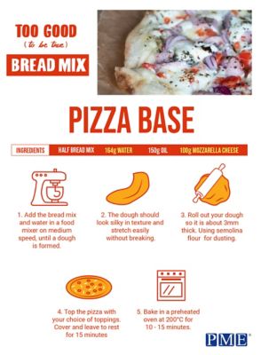 You can also use the mix to make baguettes, rolls or focaccia; customise by adding seeds, olives or tomatoes; or you can even use the mix to make your own pizza bases.